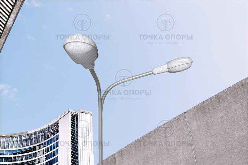 Освещение автомобильных перекрестков, пешеходных переходов, площадей, автостоянок, скверов и других объектов, требующих установки двух светильников в перпендикулярных направлениях на одной опоре.